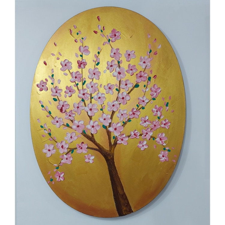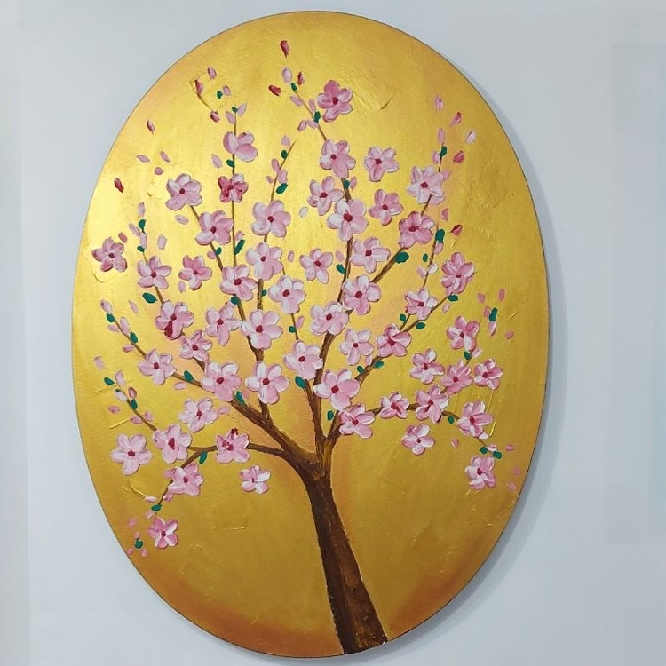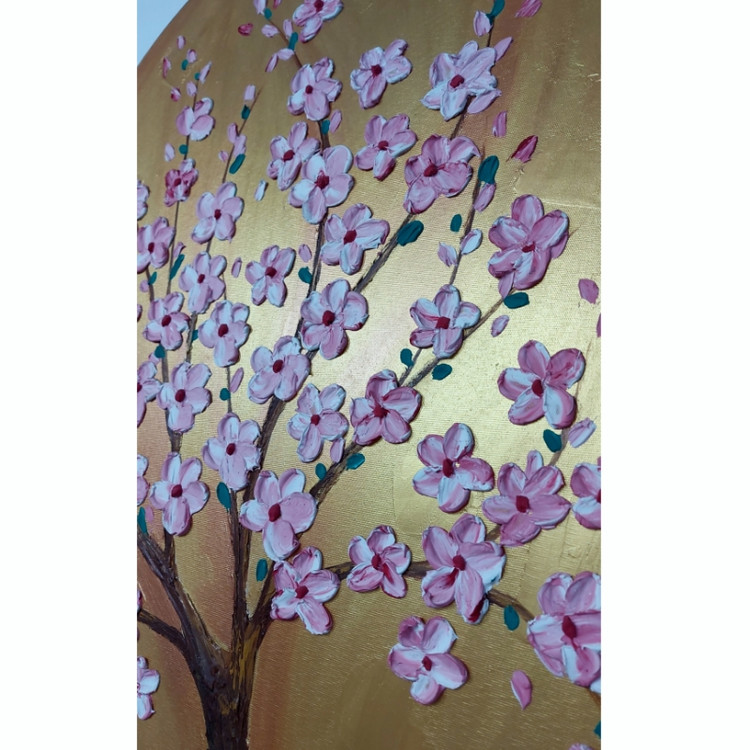 رنگ تابلو طلایی و مسی گل ها صورتی و سفید و قرمز